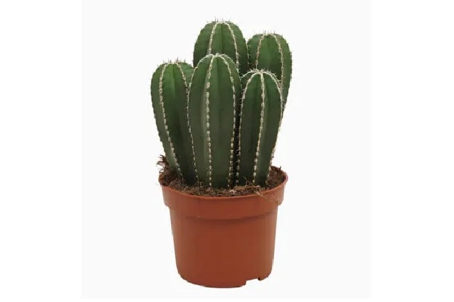 DESCRIPCIÓN VISUAL: Cactus columnar con tallos erectos y ramificados de color verde azulado. Presenta costillas pronunciadas con areolas y espinas marginales.