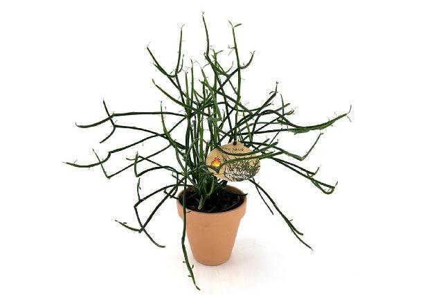BENEFICIOS Y USOS: Se utiliza principalmente como planta ornamental debido a su estructura inusual y su resistencia a la sequía. Tiene usos en la medicina tradicional en algunas culturas, aunque su savia es tóxica y debe manejarse con cuidado.