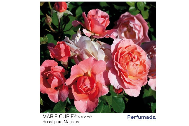 Alçada 60-70 cm. Roser Floribunda reflorescent perfumat i de color original, taronja suau amb tonalitats roses i vermelles. Molt resistent a les malalties. Obtentor: Meilland Reg: Molt poc Exposició: Molta