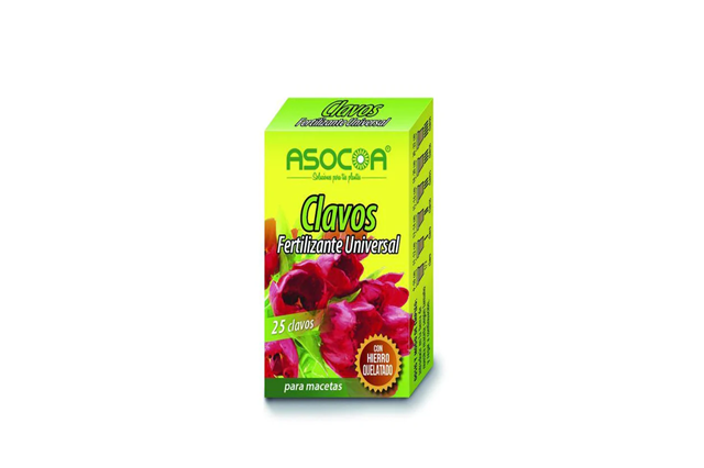Abonament Asocoa de plantes d'interior i exterior presentat en claus. Cada clau proporciona dos mesos daliment. Aquest adob és de fàcil assimilació a causa del seu lent alliberament de tots els nutrients necessaris per a la planta. Cada caixa conté 25 unitats. Ideal per a testos.