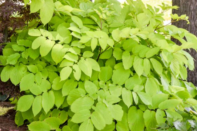 Beneficios y usos: La aralia ‘Sun King’ es una planta de hojas doradas única para la sombra. Su color será más brillante en amarillo en lugares con sol parcial y más verde lima en sombra completa. Se utiliza como planta ornamental en jardines y paisajes debido a su atractivo follaje y su capacidad para iluminar áreas sombreadas. También se puede cultivar en macetas o contenedores para agregar color y textura a patios y balcones.