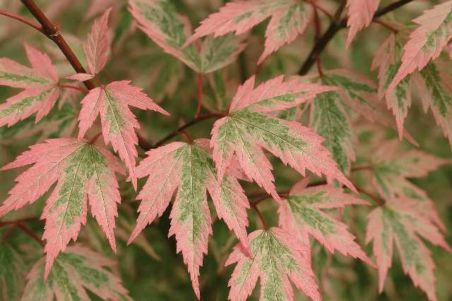DESCRIPCIÓ VISUAL: Aquest arç japonès és conegut pels seus cridaners talls vermells corall, especialment notables a l'hivern. Té fulles palmades de color verd clar que es tornen a tons grocs, taronges i vermells a la tardor.