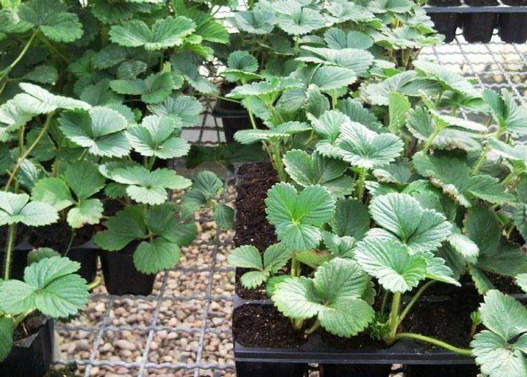 Albergínia presentada en safates de planter o test de diverses mides de contenidor.