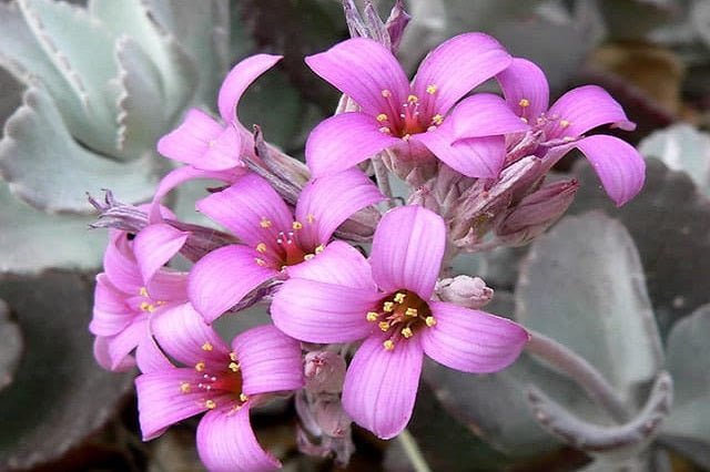 Bella planta de la família dels Kalanchoes - Vistoses fulles de color gris i belles flors de color rosa que, com més hores de llum tingui, augmenta en nombre - Resistent al sol ia les altes temperatures - Pot usar-se com a planta penjant per el seu port - Floreix des de finals d'hivern a mitjan primavera -