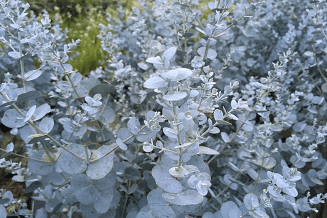 Beneficios y usos: Este árbol es apreciado por su llamativo follaje plateado-azul que emite una refrescante fragancia a mentol. Puede alcanzar alturas de hasta 12 metros si se deja crecer de forma natural, aunque también se puede mantener a un tamaño más pequeño.