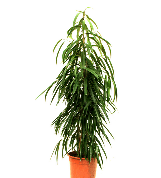 DESCRIPCIÓN VISUAL: El Ficus Alii presenta un crecimiento vertical y hojas largas y estrechas de color verde oscuro. Es una planta de interior popular por su elegante porte y su facilidad de cuidado.