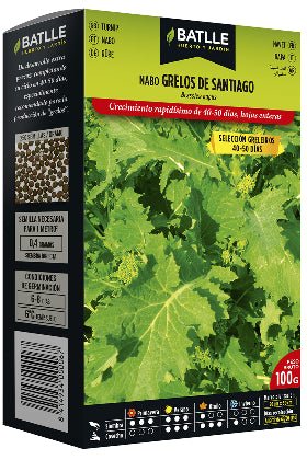 Llavors Grelos de Santiago selecció greleiros - Brassica rappa - Batlle - Forma de cultiu: Com totes les varietats de naps adquireixen el seu desenvolupament en temps fresc i humit - S'ha de sembrar de Març a Setembre segons zones, en línies separades de 20 a 50 cm o voleo - La llavor s'ha de soterrar superficialment - En ambdós casos es consumeix 5-6 Kg/Ha. Es recol·lecta de Juny a Desembre.