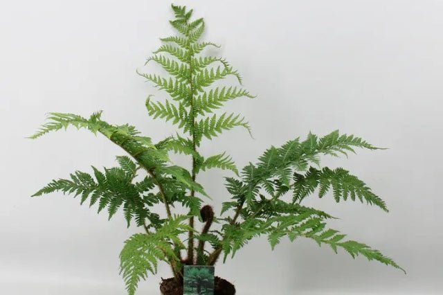 DESCRIPCIÓN VISUAL: Helecho con un tronco alto y rugoso que puede alcanzar varios metros de altura. Las frondas son grandes, de color verde oscuro y se despliegan desde la parte superior del tronco, creando una corona densa.