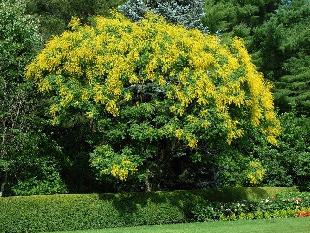 Árbol caduco presentado en diversas medidas de contenedor, alturas y edades - Es un árbol original del oriente del continente asiático - Alcanza alturas de hasta ocho metros - Produce flores amarillas con la base de color rojo o naranja - Muy usado como árbol ornamental por su belleza y estética -