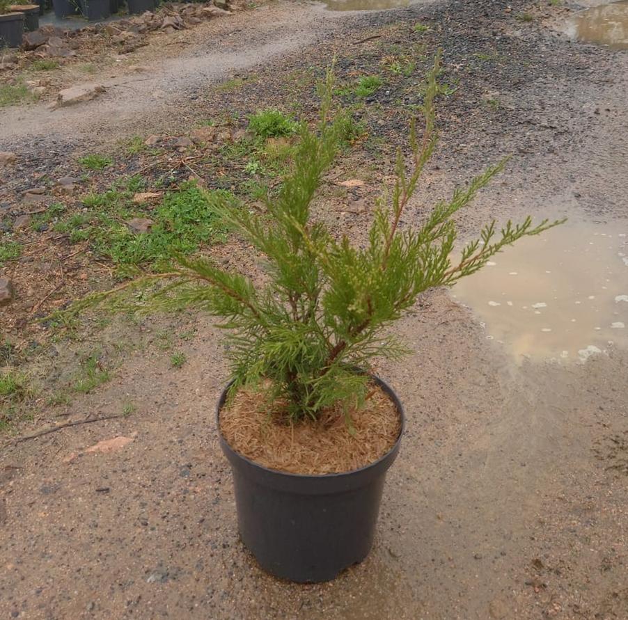 DESCRIPCIÓN VISUAL: Arbusto perenne con forma extendida y follaje denso. Las hojas son escamosas, de color verde brillante y pueden adquirir un tono bronceado en invierno.