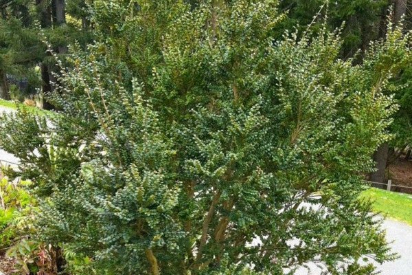 Descripción visual: La Azara microphylla, también conocida como azara de hojas pequeñas, es un árbol pequeño o arbusto de hoja perenne. Sus hojas son brillantes y muy oscuras, de color verde. En invierno, produce flores diminutas con un agradable aroma a vainilla.