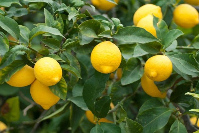 DESCRIPCIÓN VISUAL: Árbol de porte medio con hojas perennes, verdes y brillantes. Produce limones de tamaño mediano a grande, con piel gruesa y una pulpa jugosa y ácida.