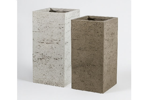 Quadrat Alt Travertino Fiberclay - Discom. Quadrats fabricats a FiberClay. El Fiberclay és un material creat amb un procés innovador que combina argila i fibra. Tots els productes de Fiberclay presenten un aspecte similar a la pedra o la terracota i alhora són lleugers i resistents al fred i la calor.