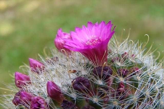 DESCRIPCIÓN VISUAL: Cactus de pequeño tamaño con forma globular o cilíndrica, a menudo agrupados en colonias. Presentan tubérculos con espinas radiales y a veces espinas centrales más largas. Las flores son pequeñas y pueden ser blancas, amarillas, rosas o rojas, dependiendo de la especie.