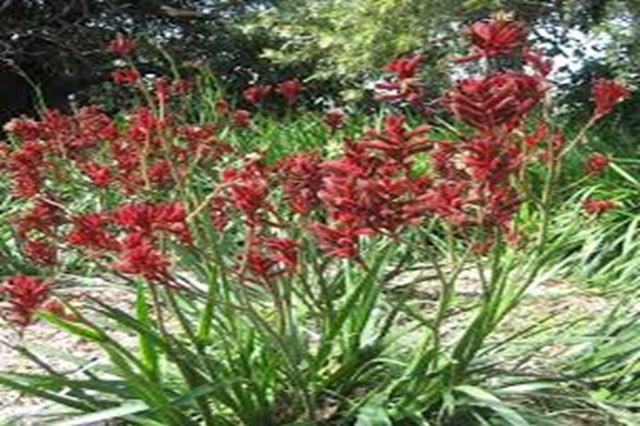 Descripción visual: El Anigozanthos ‘Bush Ranger’ es una variedad enana. Sus tallos ramificados alcanzan una altura de aproximadamente 60 cm- Las flores son de color rojo y están cubiertas de pelusa, lo que les da una apariencia única. Las hojas son similares a las de la hierba y tienen una forma estrecha y alargada.