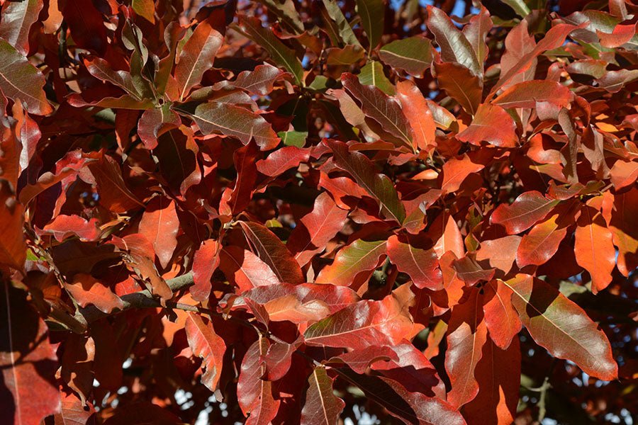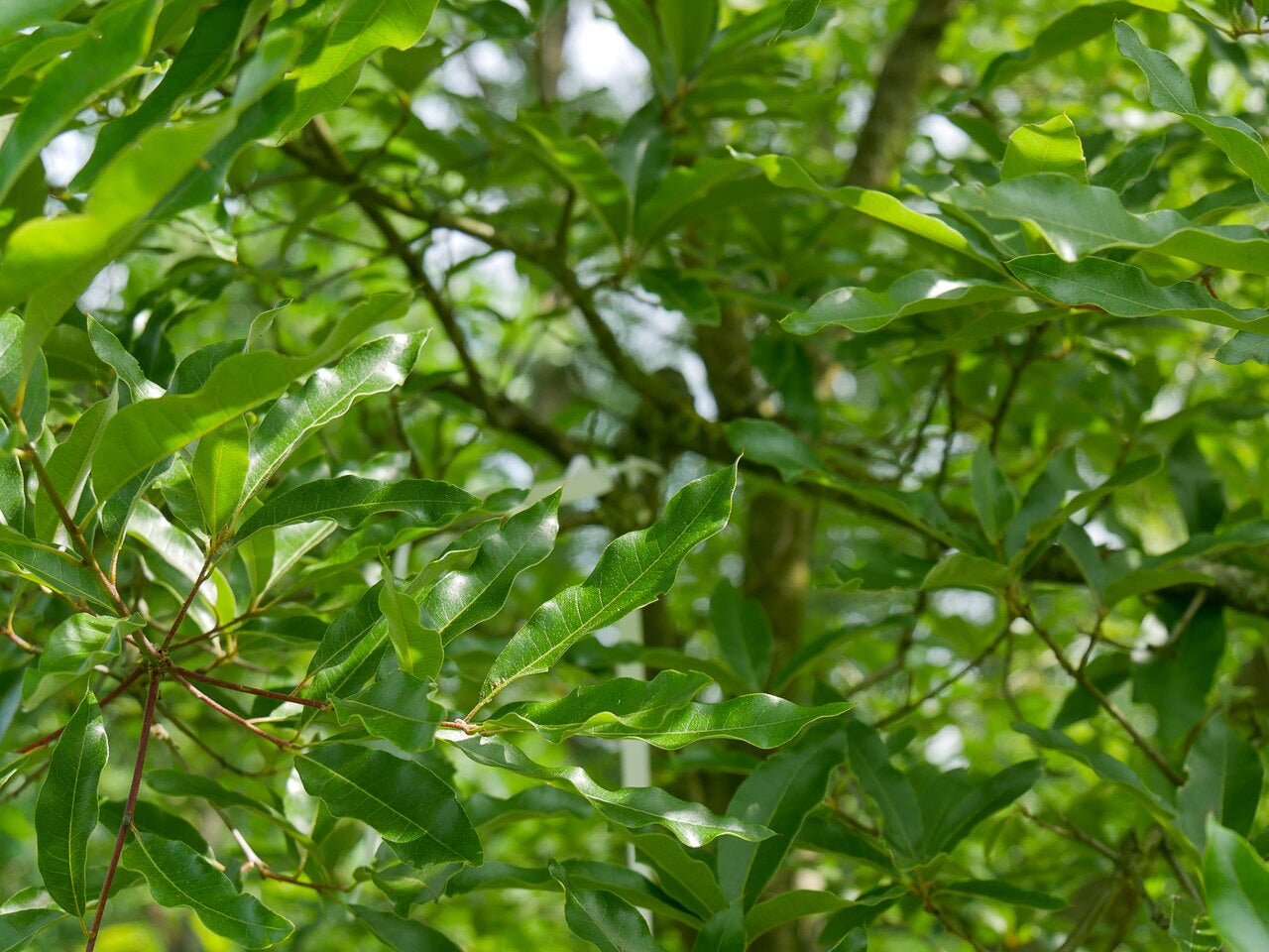 DESCRIPCIÓN VISUAL: Árbol caducifolio de porte redondeado y elegante, con copa densa y simétrica. Sus hojas son alargadas, enteras y lisas, muy similares a las del laurel, de ahí su nombre común. Presentan un verde profundo en primavera y verano, volviéndose amarillas o doradas en otoño. La corteza es gris oscura, fisurada con la edad. Produce bellotas de tamaño medio en su madurez.