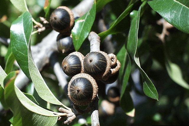 COSECHA: Bellotas maduras a finales del verano y otoño, usadas principalmente con fines ecológicos.