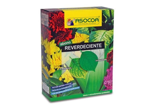 L'Abonament Reverdecent d'Asocoa combat la grogueta de les fulles de les plantes d'interior i exterior, aromàtiques, medicinals, cànnabis, bonsai, flors, jardins, arbres fruiters, arbres forestals, vinyes i hort familiar. La seva exclusiva fórmula a base de ferro i microelements proporciona a les nostres plantes un efecte reverdecent. A més, ajuda a estimular la vegetació, facilitar la fotosíntesi, donar més color a les flors i verdor a les fulles. També es pot utilitzar per acidificar la terra, combatent la calç continguda a l'aigua de reg.