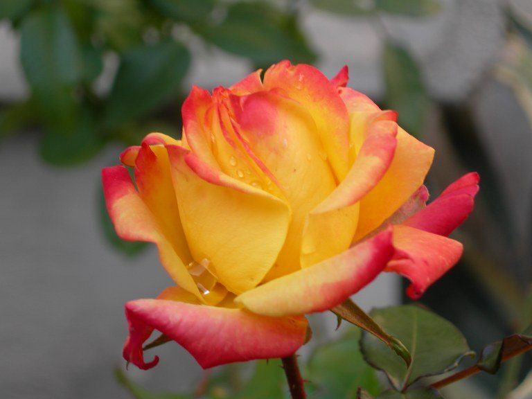 Roser bicolor de tons grocs, taronges i vermells. Flor de floració espectacular. L'arbust pot assolir més d'1 metre d'alçada. Poc reg i molta exposició solar. Obtentor: És una varietat Ferrer de Meilland.