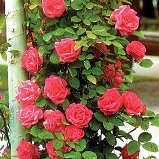 Aconsegueix els 2 metres d'alçada Decoratiu roser trepador de gran floració. Flors de color rosa fosc. Obtentor: Híbrid > Reg: Molt poc