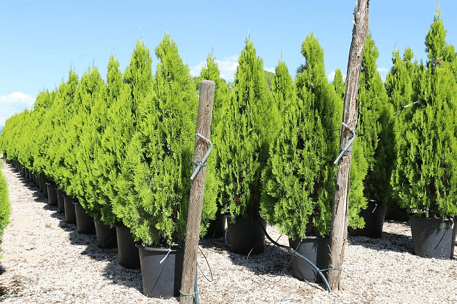 DESCRIPCIÓN VISUAL: Conífera perenne con forma piramidal y follaje denso. Las hojas son escamiformes de color verde dorado, especialmente brillantes en la nueva vegetación.