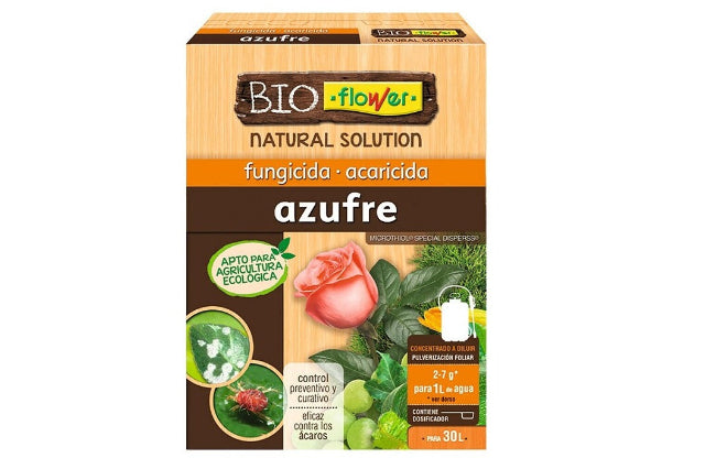 El tratamiento de azufre de Flower  es un producto formulado en microgránulos dispersables en agua. Está diseñado para el tratamiento de vegetales y ofrece un excelente resultado y adherencia en la superficie tratada. Su formulación garantiza una fácil preparación del caldo de tratamiento y una mayor persistencia. Funciona tanto como fungicida como acaricida. Azufrex es la solución ecológica de Bio Flower para atacar hongos y ácaros.