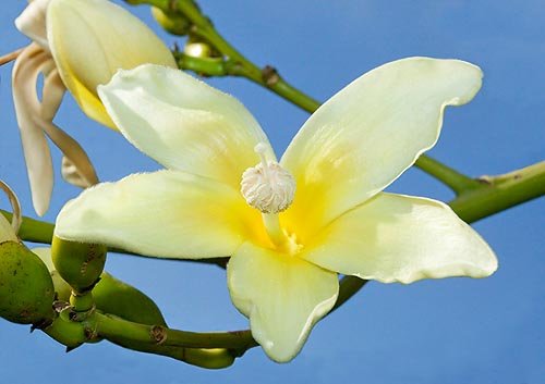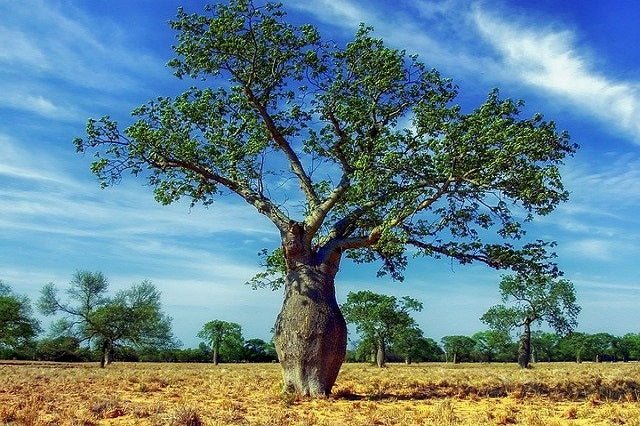 BENEFICIOS Y USOS: Ornamental por su llamativa floración y forma característica del tronco. La fibra de las semillas se utiliza en rellenos y para fabricar cuerdas.