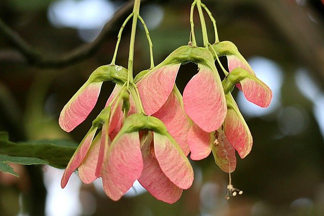 FLORACIÓN: La floración ocurre en primavera, con flores amarillo-verdosas agrupadas en racimos colgantes. Los frutos son sámaras que maduran en otoño.