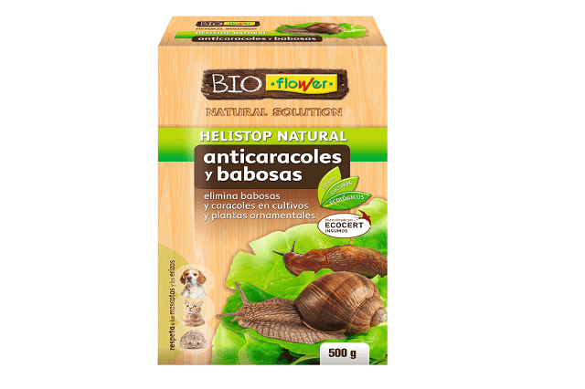 HELISTOP NATURAL es un cebo granulado molusquicida especialmente indicado para el control de babosas y caracoles en cultivos y plantas ornamentales. El cebo es atractivo para todo tipo de babosas y caracoles que se alimentan de plantas cultivadas. Al tratarse de un producto compuesto por fosfato férrico 1% p/p es totalmente compatible con el medio ambiente y aporta una fuente de hierro para enriquecer el suelo. HELISTOP NATURAL lleva la certificación ECOCERT de insumos para agricultura ecológica. El producto debe empezar a utilizarse al iniciarse la infestación o la observación de los primeros síntomas de daño. Su modo de aplicación es manual y debe distribuirse por el suelo, de modo que la actividad alimentaria de estas plagas cesa rápidamente después de la ingestión del cebo.