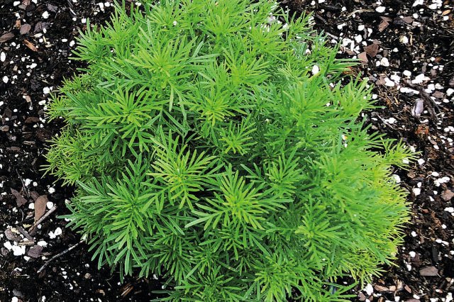 Descripción visual: El Tagetes filifolia es una planta ramificada con hojas finas y alargadas, que se asemejan a hilos. Sus flores son pequeñas y amarillas, agrupadas en inflorescencias.