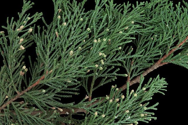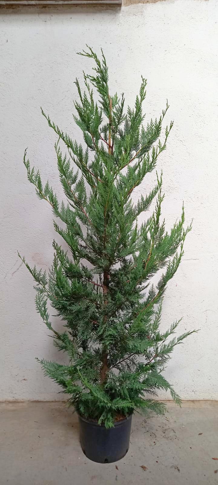 DESCRIPCIÓN VISUAL: Árbol de crecimiento rápido con forma cónica y follaje denso de color verde oscuro. Las hojas son escamosas y las ramas tienden a ser erectas y compactas.