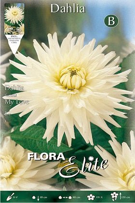 DESCRIPCIÓN VISUAL: La Dalia cactus tiene flores grandes con pétalos largos, estrechos y puntiagudos que se curvan hacia atrás, dando la apariencia de una esfera espinosa. El color de las flores de esta variedad es blanco puro.
