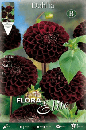 DESCRIPCIÓN VISUAL: La Dalia Pom-Pom negra es una variedad de dalia con flores esféricas y pétalos curvados que forman una bola compacta. Aunque se les llama 'negras', sus flores son en realidad de un color púrpura muy oscuro o burdeos, casi negro.