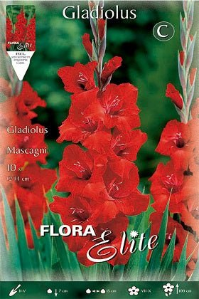 DESCRIPCIÓN VISUAL: El gladiolo rojo vivo es una planta herbácea con tallos erectos y hojas en forma de espada. Las flores son grandes y vistosas, dispuestas en espigas y de un color rojo intenso.