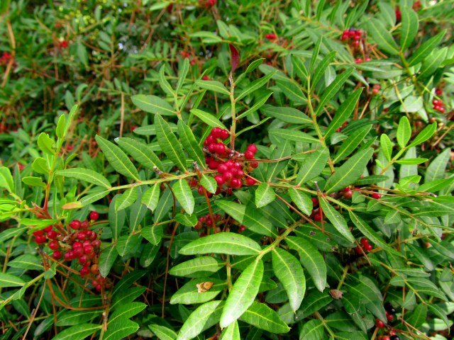 BENEFICIOS Y USOS: El lentisco tiene usos en jardinería como planta ornamental y para formar setos. Tradicionalmente, la resina se ha utilizado para hacer el mástique, un producto usado en odontología y cosmética.