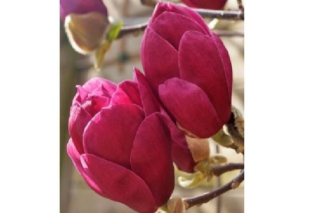 Descripción visual: La Magnolia Genie es un arbusto o pequeño árbol que se caracteriza por su forma compacta y redondeada. Sus hojas son grandes, de color verde oscuro, con un brillo suave y una textura suave al tacto. En primavera, produce flores grandes y espectaculares, de color púrpura oscuro, lo que hace que la planta sea muy atractiva en jardines y paisajes. Las flores tienen una fragancia agradable y se abren antes de que la planta eche nuevas hojas.