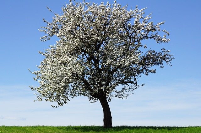 DESCRIPCIÓN VISUAL: Árbol de tamaño mediano con una copa redondeada y hojas ovaladas de color verde. Produce flores blancas o rosadas en primavera y frutos redondos, los manzanas, que pueden variar en color desde verde hasta rojo o amarillo dependiendo de la variedad.