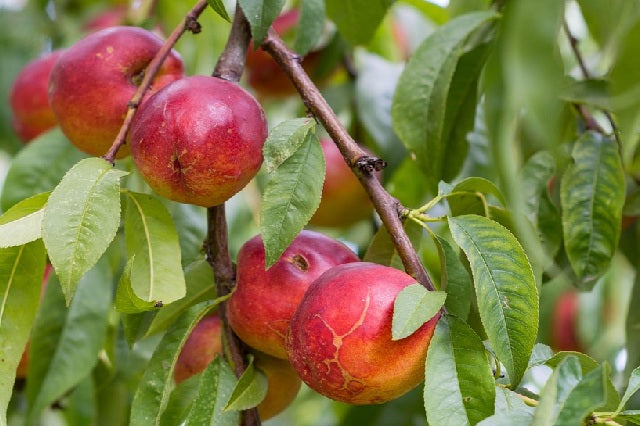 BENEFICIOS Y USOS: Las nectarinas son ricas en vitaminas A y C, y fibra. Se consumen frescas, en postres o conservas. El árbol es ornamental y apto para jardines pequeños y terrazas.