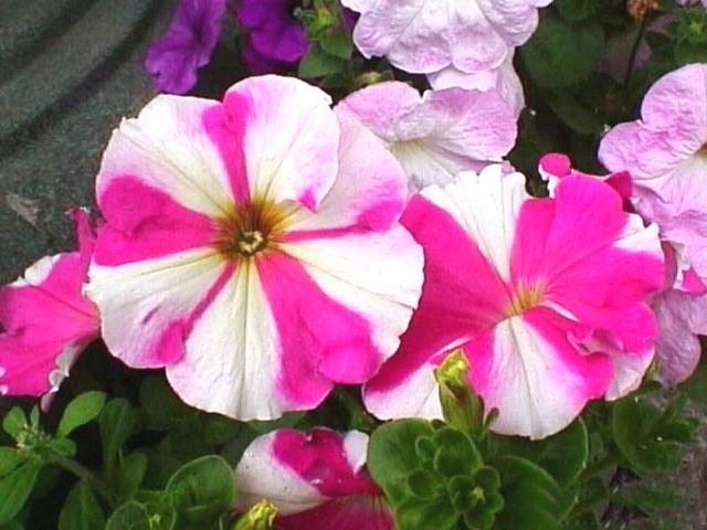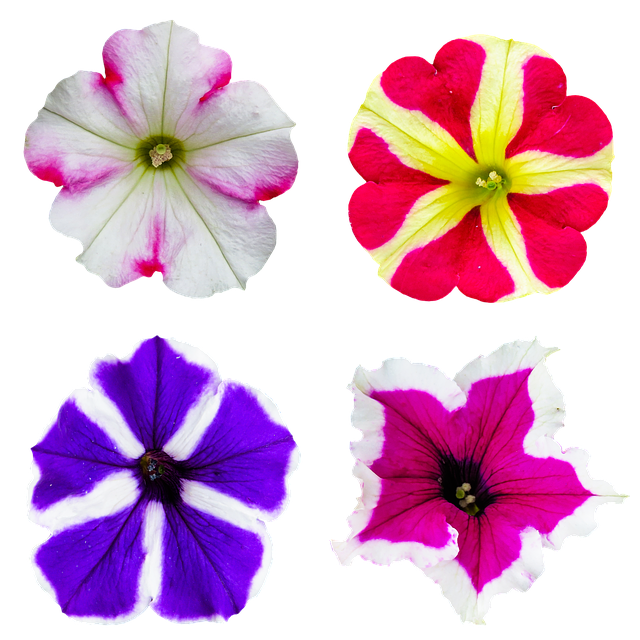 DESCRIPCIÓN VISUAL: La petunia es una planta herbácea con flores en forma de trompeta que pueden ser de diversos colores como el púrpura, rosa, rojo, blanco o azul, y a menudo presentan venas más oscuras o bordes de contraste.