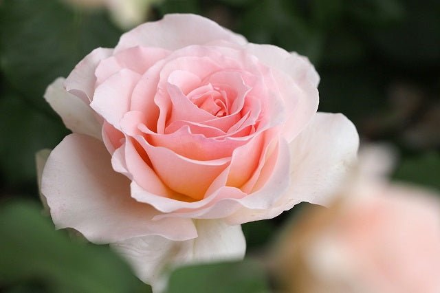DESCRIPCIÓN VISUAL: Arbusto perenne con tallos espinosos y hojas compuestas, verdes y brillantes. Flores grandes, dobles, de color rosa claro con matices más intensos en el centro, y con un aroma suave y dulce.