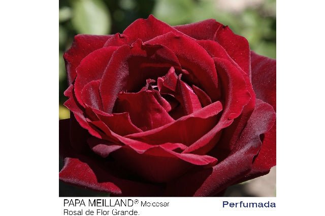 DESCRIPCIÓN VISUAL: Este rosal es conocido por sus grandes flores de color rojo oscuro aterciopelado y su fragancia intensa y dulce. Las flores son dobles y pueden alcanzar un diámetro de hasta 13 cm.