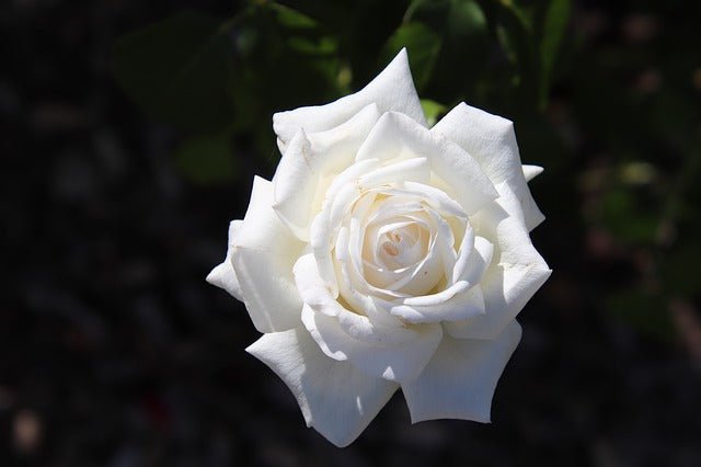 DESCRIPCIÓN VISUAL: Arbusto perenne con tallos erectos y espinosos. Presenta flores grandes de color blanco, con pétalos ligeramente ondulados y un centro más apretado.