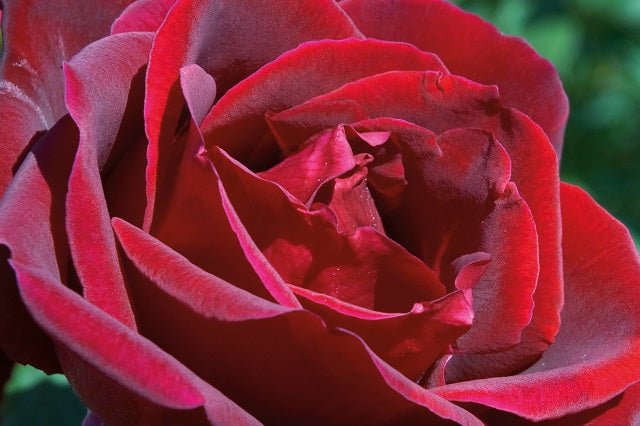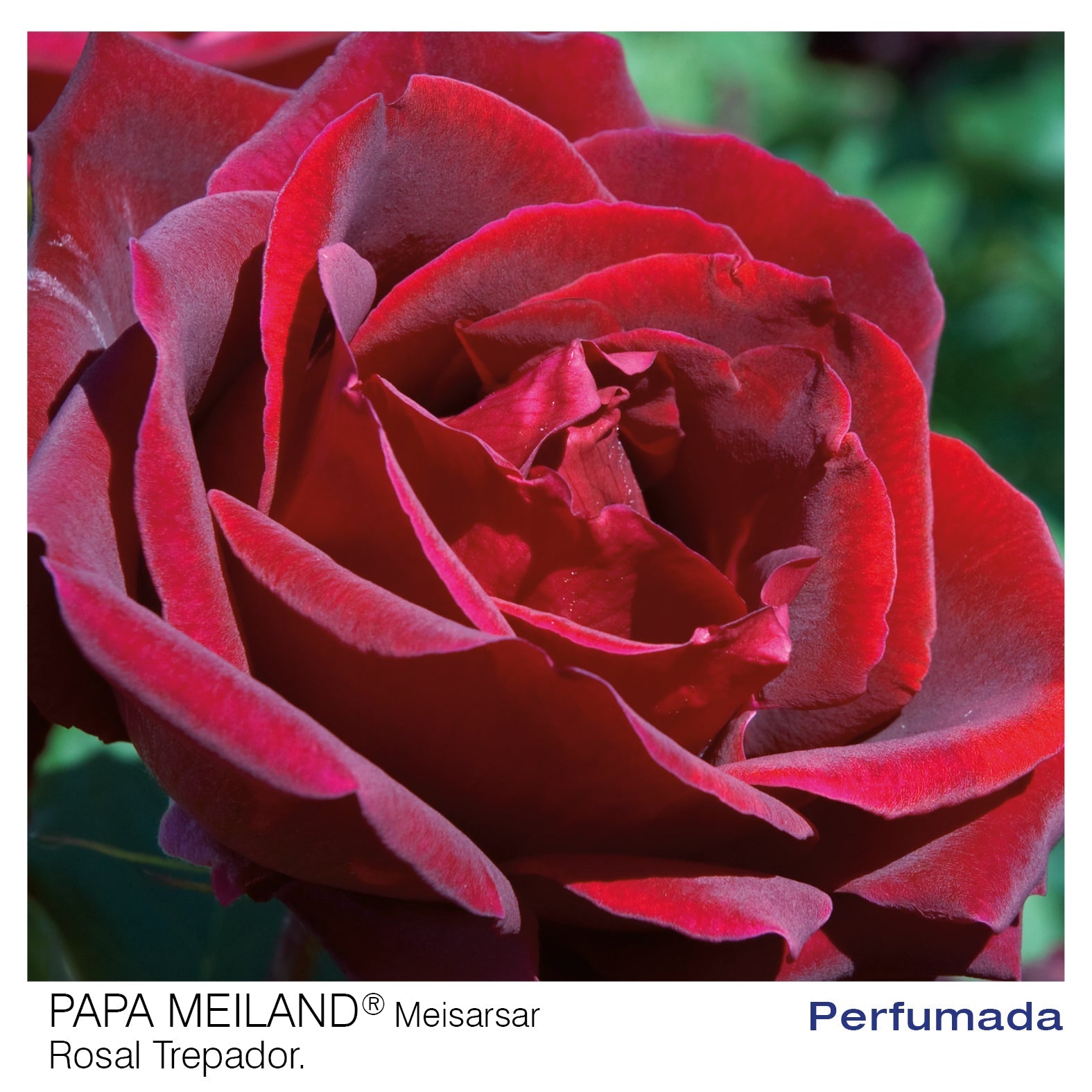 DESCRIPCIÓN VISUAL: Este rosal trepador presenta tallos largos y flexibles, con hojas verdes y brillantes. Sus flores son grandes, de color rojo oscuro aterciopelado y con una forma clásica de rosa. Poseen un aroma intenso y característico.
