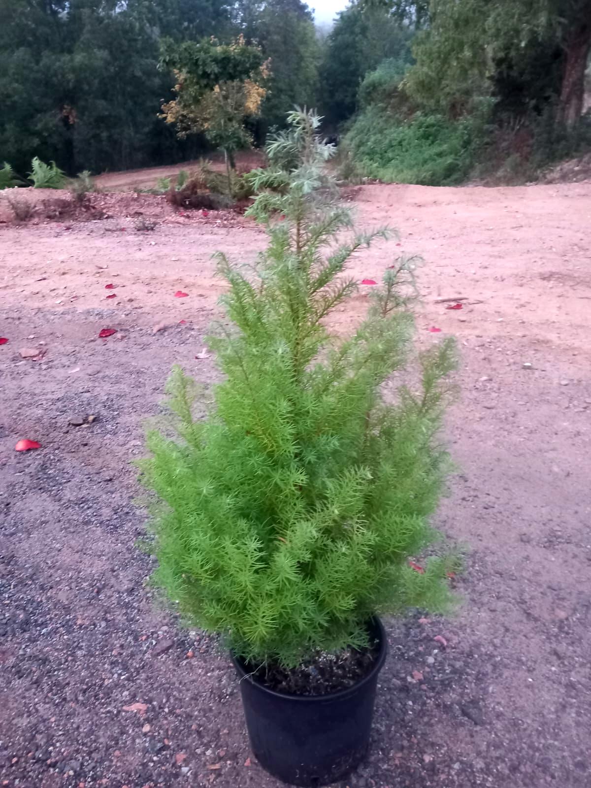 DESCRIPCIÓN VISUAL: Árbol de gran tamaño con forma cónica y follaje denso. Las hojas son agujas suaves de color verde oscuro que pueden adquirir tonos rojizos en invierno. La corteza es rojiza y se desprende en tiras.