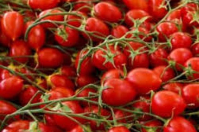 DESCRIPCIÓN VISUAL: Planta de tomate de porte determinado, con frutos pequeños, redondos y ligeramente alargados de color rojo intenso. Los tomates son firmes y tienen una piel gruesa, lo que los hace ideales para el secado y la conservación.